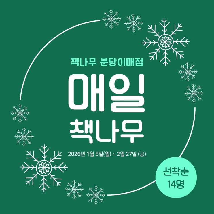 ▾▾ 겨울방학 특강 신청 링크 ▾▾ 안녕하세요. 책나무 분당이매점입니다! 겨울방학! 우리 아이들에게는 ‘쉬는 시간’이자, 한편으로는 ‘단단히 성장할 수 있는 시간’이기도 합니다. 책나무 분당이매점은 방학기간을 ‘생각의 힘을 기르는 문해력 성장기’로 만들기 위해 <매일 책나무> 방학특강을 준비해왔습니다. 선배 학부모님들의 입소문으로 잘 알려진 <매일 책나무> 매일 쌓이는 독서습관과 깊어지는 사고력! 그 변화는 겨울이 지나 2026년 새봄이 올 무렵이면 확실히 느껴집니다. ▾▾ 2025 매일 책나무 특강 후기 ▾▾ 책나무 분당이매점은 이번 겨울방학에도 <매일 책나무> 특강을 진행합니다. 2026년 1월과 2월....... <img src="https://blogthumb.pstatic.net/MjAyNTExMTRfNjEg/MDAxNzYzMDk3NTMyNzM5.qDbsep5gmJVR7aYW3fUf-29TS8hGkp8JPpXsmNrukD4g.f1fGvkgIDxWQv0v1-XaHm-hDUeDsDQGyvHX_v_wbcFUg.JPEG/%B8%C5%C0%CF%C3%A5%B3%AA%B9%AB_%BA%ED%B7%CE%B1%D7_%C7%A5%C1%F6.jpg?type=s3" />