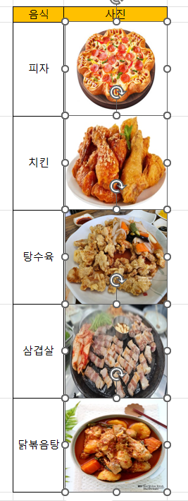안녕하세요 동탄영진IT학원입니다! 오늘은 엑셀에서 그림을 편하게 넣는 방법을 설명드리겠습니다! 엑셀에서는 한글 프로그램이나 파워포인트와는 다르게 표(셀)에 그림으로 색을 채울 수 없습니다! 아쉽게도 하나하나 그림을 삽입하여 셀 크기에 맞게 조절을 해주셔야 하는데요 조금이라도 편하게 넣을 수 있도록 도와드리겠습니다! 다음과 같은 데이터에 그림을 넣어보겠습니다. 일단 [삽입] 탭에 넣고 싶은 그림들을 모두 드래그하여 한 번에 삽입을 합니다. 팁은 넣고 싶은 그림의 이름을 순서대로 번호를 매깁니다. 1피자, 2치킨... 이런 식으로 번호를 매겨야 그림이 순서대로 삽입이 됩니다 하면 이런 식으로 그림이 삽입이 됩니다. 이후....... <img src="https://blogthumb.pstatic.net/MjAyNTEyMTZfOTEg/MDAxNzY1ODc4OTU4MzMz.ZgyEm3rERaiTc4l18YBun-3qSybmqPYZmasMhPcxGWcg.S9Ne2GUviP9NqeJnpvroZ2MBNF4oR5tKdbLKVx-FJt8g.PNG/image.png?type=s3" />