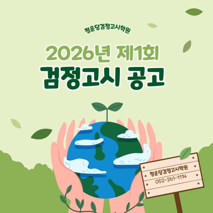 안녕하세요 울산 검정고시학원 청운당 검정고시 학원입니다 2026년 제1회 4월 검정고시 시행공고가 발표되었습니다. 응시를 준비중인 학생, 학부모님께서는 일정을 확인하시고 참고하여 주시기 바랍니다. 원서 접수는 현장접수, 온라인 접수 2가지로 진행됩니다. 기간은 26.2.9(월) - 2.13(금) 이고 온라인 접수의 경우 1일 단축운영됩니다. 온라인접수의 주소는 아래와 같습니다. 대국민서비스 합격자 발표일은 26.5.8(금) 입니다. 시험 응시 자격의 경우, 위와 같으며 고등의경우 자퇴일 기준으로 6개월이 지나야 함으로 25.8.4일 이후 제적자는 응시할 수 없습니다. 시험장소는 26.3.20(금)에 공고가 납니다. 원서 접수는 학생 개인이 직접 진....... <img src="https://blogthumb.pstatic.net/MjAyNjAyMDRfMTA2/MDAxNzcwMTc5Njk2OTI1.rrxXlMGKJfYaXzSrReDFTsyRMzxN8SvPHZrt0EhpGH8g.Az5gmuoPkfbMEhIHRy1u9J_planP2Otv5zqnJUysZNYg.JPEG/001.jpg?type=s3" />