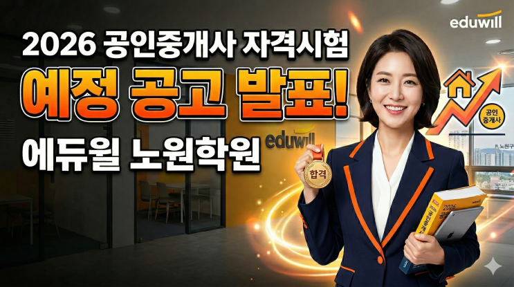 버티고개역 근처 공인중개사 학원을 찾고 계시나요? 6호선 라인이라 교통은 편리하지만, 막상 전문적인 커리큘럼을 갖춘 학원을 찾기 쉽지 않으셨을 텐데요. 오늘은 버티고개에서 지하철로 한 번에 이동 가능하면서, 확실한 합격 노하우를 가진 에듀윌 공인중개사 노원학원에서 방금 발표된 2026년 시험 일정과 함께 합격 전략을 소개해 드립니다. 2026년 제37회 공인중개사 시험, 날짜가 잡혔습니다! 시험 준비의 시작은 일정 확인부터죠. 한국산업인력공단에서 발표한 따끈따끈한 예정 공고 내용을 정리해 드립니다. 1. 시험 시행일 (D-Day) 2026년 10월 31일 (토) 아직 시간이 많이 남은 것 같지만, 지금 시작해야 동차 합격이 안정권에....... <img src="https://blogthumb.pstatic.net/MjAyNjAyMjhfOTYg/MDAxNzcyMjY1MjgyNjQ1.-7BPC2jIMhHZlajl9WuIp54QAyNGEOaq4mXjtbfjpZcg.OcmypnhieLiRQKuadnVNNRzA6wxhIJBWFPEuPWgb1WUg.PNG/Gemini_Generated_Image_cebqfcebqfcebqfc.png?type=s3" />