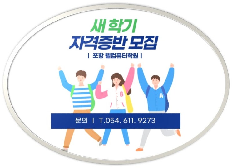 2026년도 시작한지 어느덪 2개월이 지나고 있습니다. 이제 많은 학생들이 새학기 준비를 하고 있을 텐데요~ 설례임반 걱정반일거라 생각이 듭니다. 요즘 AI인공지능, 로봇 등 새로운 컴퓨팅 산업이 빠르게 발전하고 있습니다. 과연 우리 친구들이 그걸 따라갈수 있을까? 저도 걱정이 앞섭니다. 저희 포항컴퓨터학원 웰컴퓨터학원에선 이런 고민들은 저희가 하고, 학생들은 믿고 따라올 수 있도록 항상 준비하고 노력하도록 하겠습니다. 3월 새학기 시작입니다. 준비하고 있는 강의에 대해 스케줄표 남깁니다~ 자격증반 ITQ 컴퓨터활용능력1급(컴활1급) 컴퓨터활용능력2급(컴활2급) GTQ 1급/2급/2급(포토샵) GTQi 1급/2급/3급(일러스트) CAT캐드 1....... <img src="https://blogthumb.pstatic.net/MjAyNjAyMTlfMjU0/MDAxNzcxNDg1MzAzMzYw.7Rd_geF2ahzpi9MH_r52vj5h_SWOAN7V5jLwSivUSDYg.MxSsR9WXbYCiq5rncayITCq_tILoFn0789czKpCgIO0g.JPEG/%BB%F5%C7%D0%B1%E2-002.jpg?type=s3" />