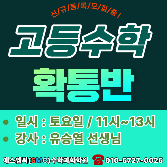 안녕하세요 에스엠씨(SMC)수학과학학원 입니다. 오늘 저희 학원에서 신학기 전 개강반(II)에 대해 안내해드리고자 합니다. 첫번째, 고등수학 확률과 통계반 개강 두번째, 고등수학 기하 개강 세번째, 물리1(중등심화반) 개강 저희학원은 소수정예로 운영되고 있으나 3명이상 모집시 개강!!되며 2명이하 는 폐강!!될수있는점 참고하시기 바랍니다. 자세한 교육과정이 궁금하시다면 언제든지 학원으로 연락주시기 바랍니다. 통화가 어려운 경우 문자 남겨주시면 연락드리겠습니다. ex) 학교/학년/문의내용(간략히) 문의 : 055-541-0025 / 010-5727-0025 <img src="https://blogthumb.pstatic.net/MjAyNjAyMjNfNjAg/MDAxNzcxODM5NzgzNTY5.4N0RLi7hNcP38Khbbcmu1l2oNj6uBq3vDlx2I8hvArIg.xNJob7ExOJqI_0v_rz3lEd3NyeMdD21fKuJtXoszsvog.PNG/image.png?type=s3" />