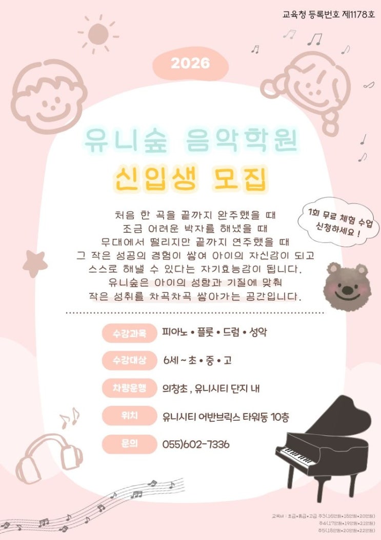 창원 유니시티 음악학원 추천 2026 유니숲음악학원 신입생 모집