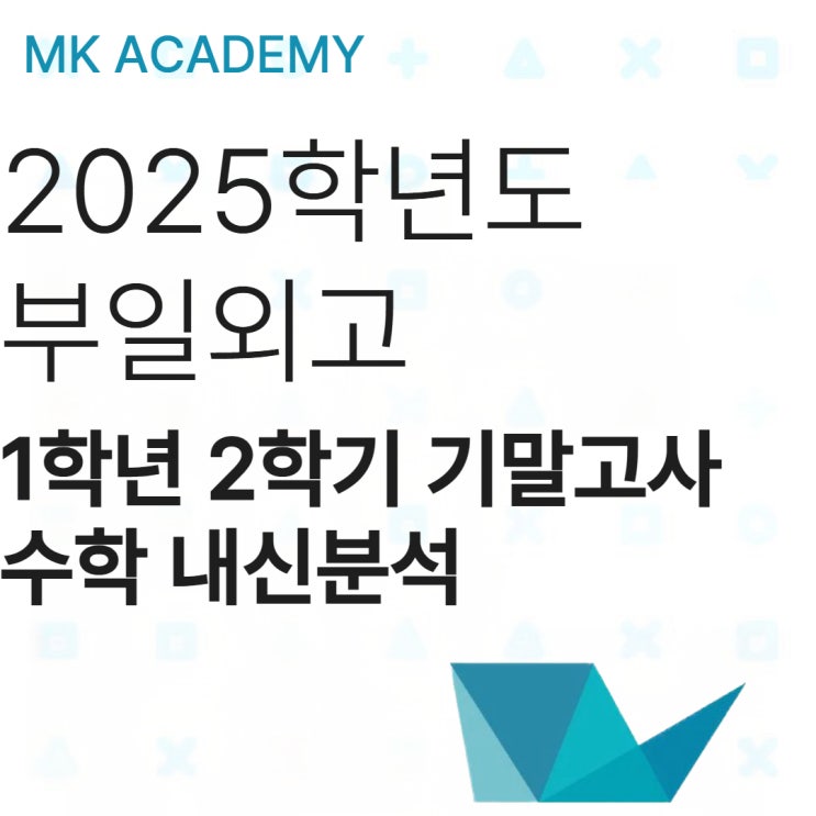 안녕하세요? MK아카데미입니다. 최근 학부모님들의 관심이 매우 높은 부일외고 1학년 수학 내신 분석에 대해 안내드립니다. 현재 부일외고에 재학 중인 학생의 학부모님은 물론, 향후 부일외고 진학을 목표로 준비 중인 학부모님과 학생들께서도 이번 내용을 꼼꼼히 살펴보신다면 내신 대비 방향을 잡는 데 큰 도움이 될 것입니다. 이번 분석은!!! 부일외고 1학년 수학 내신반을 직접 담당하고 계신 이사윤 선생님의 실제 수업 경험과 시험 출제 경향을 바탕으로 정리한 내용입니다. ✔ 학교별·학년별 내신 특징 ✔ 시험에 자주 출제되는 유형 ✔ 실수하기 쉬운 포인트와 대비 전략 등을 중심으로, 막연한 추측이 아닌 실질적인 내신 대비 방법을....... <img src="https://blogthumb.pstatic.net/MjAyNTEyMjBfMjcx/MDAxNzY2MjA5NDU1NDYw.3PETmwMXSBbtNwakMmAhJUFK0IMs2aKnKoNfJJNq7aMg.3LGn7Wn2NWSBbYc6YpzBEWp0Tdt2xGiMwUUabD0pGPMg.JPEG/%B1%B3%C0%B0%C1%A4%BA%B8_%2827%29.jpg?type=s3" />