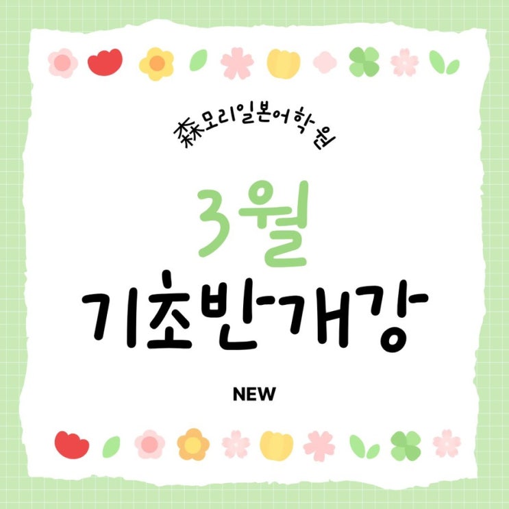 기다려주셨죠? 3월 3일, 기초반이 시작됩니다 많은 문의를 주셨던 Suzuki先生 & 김승희 선생님의 기초반, 드디어 3월 개강합니다. 일본 유학을 준비하는 학생, 교환학생을 목표로 하는 학생들이 기초부터 탄탄하게 차근차근 스텝을 밟아갈 수 있는 과정입니다. ✔ 화·수·금 주 3회 ✔ 소수 정예반 ✔ 기초부터 탄탄하게 소수로 운영되는 반이라 빠르게 마감될 수 있습니다. 관심 있으신 분들은 서둘러 문의 주세요. . . #대구모리일본어학원 #모리일본어학원#대구일본어#대구jlpt#일본유학 <img src="https://blogthumb.pstatic.net/MjAyNjAyMjNfMTA0/MDAxNzcxODI2MTAxNzY2.s42ysGFYvaX-ERL0LjDRUJw5hUhhfBdQE3s0EZNpLJwg.qtqIQR-ScK7VG151PYlofVk5tDpyf0nHqPu53PK2vDEg.JPEG/%C1%A6%B8%F1%C0%BB_%C0%D4%B7%C2%C7%D8%C1%D6%BC%BC%BF%E4.%A3%AD2.jpg?type=s3" />