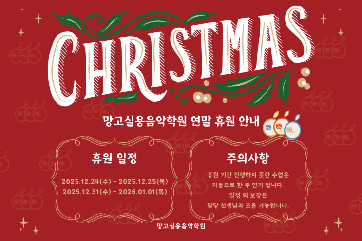 [다사망고실용음악학원] 2025년 12월 휴원 안내