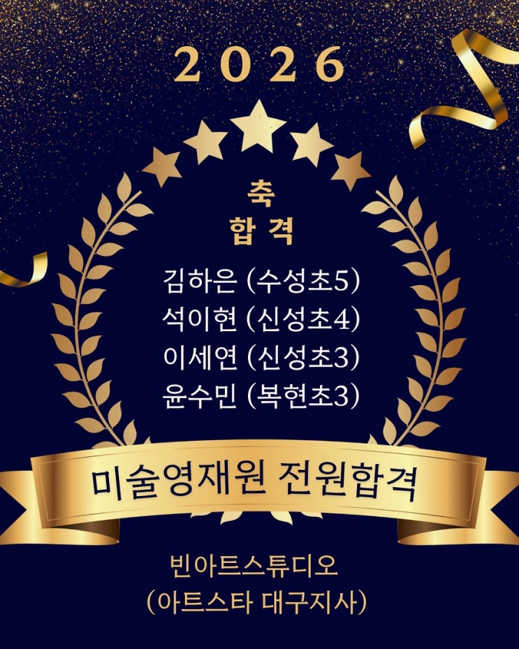 대구교대 미술영재원 ✔️ 모두들 아시다시피 ^^ 만만한 곳이 절대 아니라서 영재 친구들만 모아 2달간 원장직강으로 제가 만든 영재원 커리큘럼으로 체계적으로 준비 했습니다. 각 친구의 장점을 최대한 뽑아보고 매 시간 아이들과 완성된 그림에 대해 면밀히 분석 하고 ✔️ 검토하고 ✔️ 수정하는 작업을 했어요. 실력있는 아이들이라 ^^ 믿어 의심치 않았는데 (그래도 사실 원장 많이 긴장했었음 ㅋㅋㅋㅋ) 전원합격 이라는 행복으로 2025년을 마무리짓게 해주었네요 우리 친구들 정말 고마워 ❣️❣️❣️ 약속대로 선물 준비 해야지 ㅋㅋㅋㅋㅋㅋㅋㅋ 하반기쯤 대구 아트스타 원장님들께 영재원 정보 풀겠....... <img src="https://blogthumb.pstatic.net/MjAyNTEyMzFfMTcy/MDAxNzY3MTgwNzE0MjE4.VCrmkxIW9_Z3LPHoCyD-rtPqIGREFLNgUXfIQ3mTBTcg.4VTCgKvLT7NhqUsVi_F5APKTvTX5Mg3al18MHSeye7kg.JPEG/99CB1161%A3%AD6411%A3%AD4E35%A3%AD8997%A3%AD52BE3757FA0B.jpg?type=s3" />