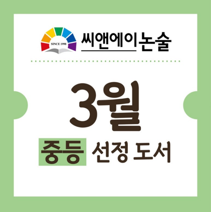 안녕하세요, 씨앤에이논술입니다. 중1 3월 선정도서 목록 및 학습 계획서 안내드립니다. 대치동 씨앤에이와 진도가 다를 수 있습니다. 문의사항은 학원으로 연락바랍니다. ☎️ 053) 755 0054 ☎️ 053) 755 3773 <img src="https://blogthumb.pstatic.net/MjAyNjAyMjJfMTg1/MDAxNzcxNzQwNzIwNjk3.U0si1xmJlg45Mv-nRhnh1w8poIzXugvHzqBMjjj7Zn0g.ESHgYjdfzFcFpMhTv7btNnfJsRVZ119WyJINGcuiU48g.PNG/3%BF%F9_%C1%DF%B5%EE%BA%CE.png?type=s3" />