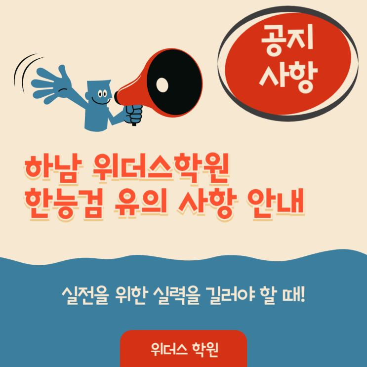 안녕하세요, 위더스 학원입니다. 한국사능력검정시험이 이제 정말 코앞으로 다가왔습니다. 그동안 열심히 준비한만큼 좋은 결과 얻으시길 위더스 학원에서 진심으로 응원합니다!! 첨부된 이미지를 통해 시험 시간표, 입실 시간, 준비물을 안내해드리니 꼭! 확인 부탁드립니다. 다시 한번 수험생 여러분의 합격을 기원합니다^^ 감사합니다. <img src="https://blogthumb.pstatic.net/MjAyNjAyMDVfMTU1/MDAxNzcwMjc5MDgyMTE3.wjtbMUdv4CULmei7XLl-_8b7_XuzLpKAb4F0nBxvjKwg.b9QTkJyL7b-npJ-ZbUDBzUv70GWc7j3dN_AIQkErZssg.PNG/%BA%ED%B7%CE%B1%D7_%BD%E6%B3%D7%C0%CF_%B8%F0%C0%BD-001_%281%29.png?type=s3" />
