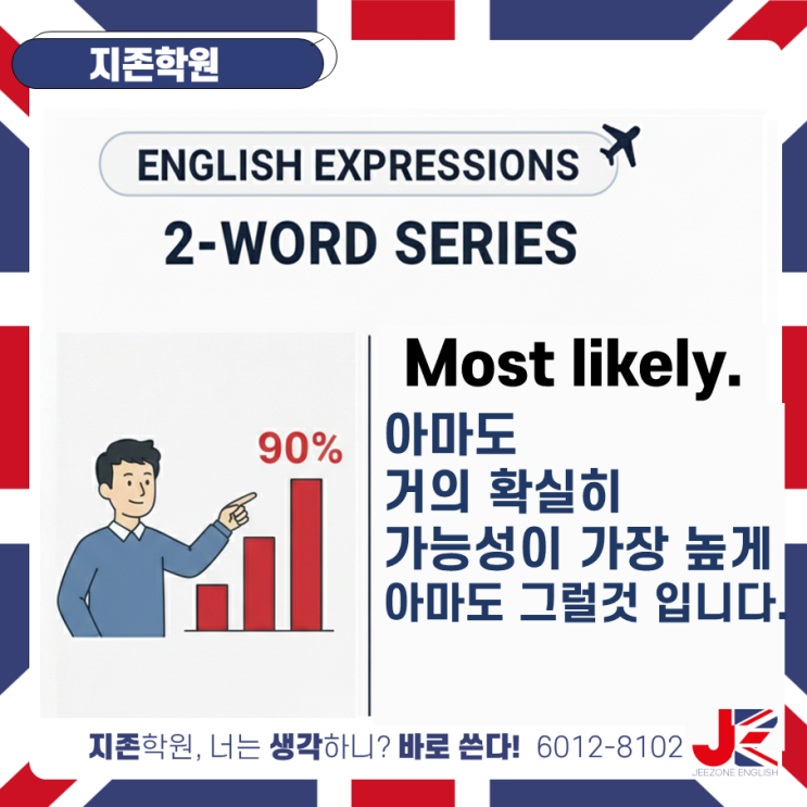 광명 철산동 초등(중등) 영어학원, 광명북초 영어학원, 광명동초 영어학원, 광명 도덕초 영어학원 광명북중 영어학원, 광명중 영어학원, 철산중 영어학원, 개웅중 영어학원, 지존 학원입니다. 1. Most likely 이럴 때 써요 Most likely = 아마도 = 거의 확실히 = 가능성이 가장 높게 그냥 Maybe 보다 더 확신이 있는 예측 느낌입니다. Maybe → 그냥 추측 Most likely → 거의 맞을 것 같은 추측 아이들이 쓰기 쉬운 상황 날씨 예측 시험 결과 예상 친구 행동 예상 가족 일정 예상 It will most likely rain tomorrow. 내일 아마 비 올 거야. He will most likely win. 그가 아마 이길 거야. She is most likely at home. 그녀는....... <img src="https://blogthumb.pstatic.net/MjAyNjAyMTVfMTM1/MDAxNzcxMTYyODE0MDIy.mw6bEqm_2snY8eWEQo2rV0yZbbOYIcsC5Tu69zXmiwAg.LZMsT9UQoCWl06YvOwgqcljQbysGteat5GjShK1bM3Qg.PNG/Most_likely-%BE%C6%B8%B6_%B1%D7%B7%B2%B0%CD%C0%D4%B4%CF%B4%D9.png?type=s3" />