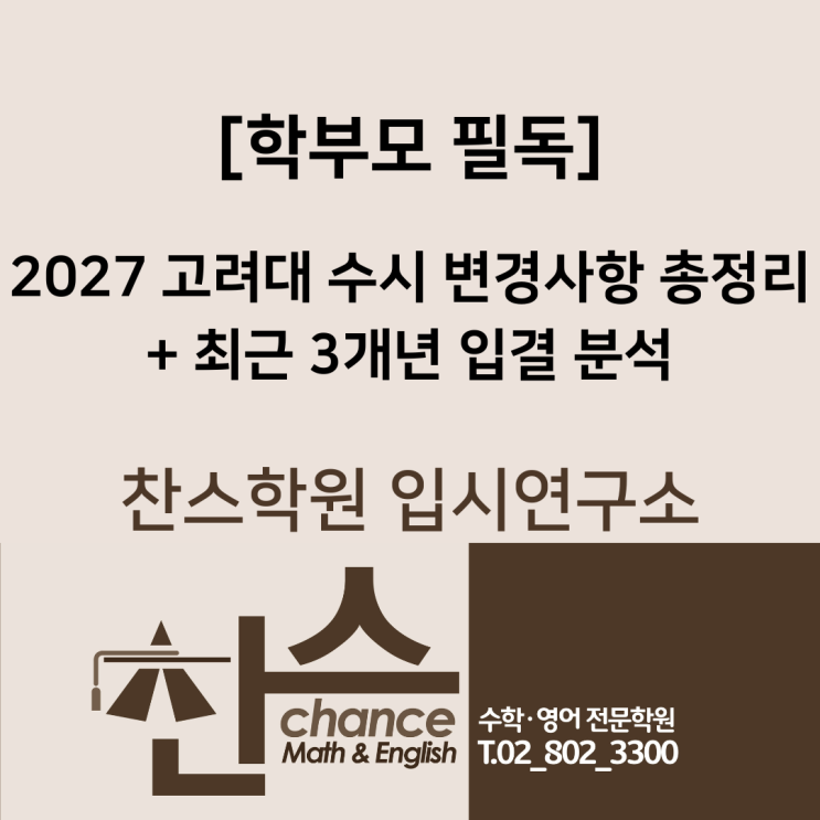 [찬스학원 입시분석] 2027 고려대 수시 변경사항 총정리 + 최근 3개년 입결 분석