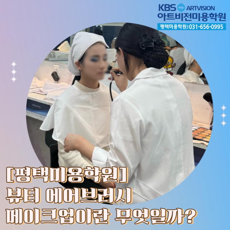 안녕하세요! 평택 크브스입니당~! 오늘은 에어브러시에 대해 설명하는 글을 들고 왔는데요! 한번 보러 가실까요~? 최근 뷰티 업계에서 빠질 수 없는 핵심 기술 중 하나가 바로 에어브러시 메이크업입니다. 피부 표현의 완성도를 한 단계 끌어올려 주는 에어브러시는 방송,웨딩,화보,특수분장 등 다양한 현장에서 활용되며, 전문 메이크업 아티스트를 꿈꾸는 분들이 반드시 익혀야 할 기술로 자리 잡고 있습니다. 이에 따라 저희 평택 크브스에서는 실무 중심의 뷰티 에어브러시 수업을 체계적으로 진행하고 있습니다. 에어브러시는 공기를 이용해 파운데이션이나 컬러를 미세하게 분사하는 기법으로,손이나 브러시로 표현하기 어려운 얇고 균일한....... <img src="https://blogthumb.pstatic.net/MjAyNjAyMTBfNTAg/MDAxNzcwNzE5MzIxNTA1.8l4QlCk7JqqfYooBQsF_fhfnB7oRv18AfA3SgPJkRlgg.P2mH1xBknSvJ8vl0vz4JzcmDmagseYFfyj_VYXvj1X4g.PNG/%BA%ED%B7%CE%B1%D7-%C7%A5%C1%F6-001_%281%29.png?type=s3" />