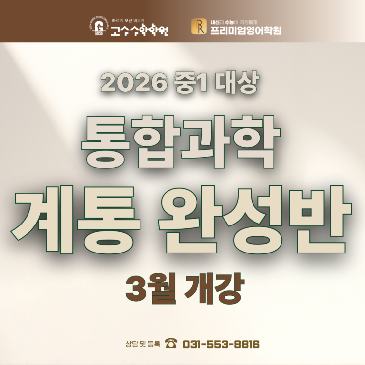 3월, 새로운 출발의 계절과 함께 우리 학원도 힘차게 새로운 걸음을 내딛습니다. 설렘과 기대, 그리고 작은 긴장을 안고 시작하는 이 시점에서 여러분 한 사람 한 사람의 도전은 이미 소중한 첫걸음입니다. 지금 이 순간의 선택과 노력이 앞으로의 성장과 가능성을 만들어간다는 것을 우리는 잘 알고 있습니다. 우리 학원은 단순히 문제를 많이 풀고 성적만을 올리는 곳이 아니라, ‘왜’라는 질문을 통해 스스로 생각하고, 끝까지 포기하지 않는 힘을 기르는 공간이 되고자 합니다. 수학은 단기간에 완성되는 과목이 아닙니다. 꾸준함과 성실함, 그리고 올바른 학습 방향이 만나야 비로소 진짜 실력이 됩니다. 우리는 학생 한 명 한 명의 수준과....... <img src="https://blogthumb.pstatic.net/MjAyNjAyMDVfMTcy/MDAxNzcwMjcxNjQ4Njgz.JHIaOVsWc6pbdDQTAZpSWuKi9RwI5Q_D3SjuABcRBqwg.SD_dx3jCWYI7CSPu_iovQpqCoDkomdksy6W9uw6cyRMg.PNG/%B1%ED%BB%FD_%BE%C8%B3%BB%B9%AE_A4.png?type=s3" />