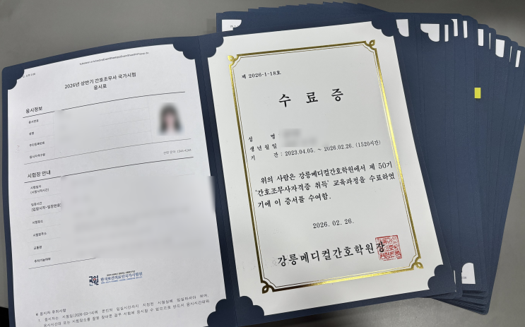 작년 4월 2일 개강했던 50기 훈련생 분들이 어느덧 종강을 하루 앞두고 있습니다. 3월 시험을 앞두고 있어 마냥 홀가분한 얼굴은 아니지만, 오늘 출결 카드를 찍는 모습에서 그동안의 노력에 대한 뿌듯함이 가득 느껴졌습니다. 오늘은!! 50기의 종강을 준비했습니다. 11개월, 총 1,520시간 동안 성실히 임해온 훈련생분들께 소중한 수료증을 준비했습니다. 또한, 훈련생을 대표해 모든 과정 동안 봉사와 도움을 아끼지 않은 분께는 공로상과 선물을, 우수한 성적으로 학업에 모범을 보여준 분께는 학업우수상과 선물을 준비했습니다. 이뿐만이 아닙니다!! 50기 전원이 1,520시간을 성실하게 마무리한 것을 축하하며, 앞으로 각자의 자리에서도 지....... <img src="https://blogthumb.pstatic.net/MjAyNjAyMjVfMTEw/MDAxNzcxOTk0Nzc4NjQz.qLTuY2CfQGL7M3UdlG14NqxvhgiBIIieBibiw8oAx_sg.boPaY80rRE48RaXQwSk4xN_yiI-RAcTF5KoGgoOhohEg.PNG/image.png?type=s3" />