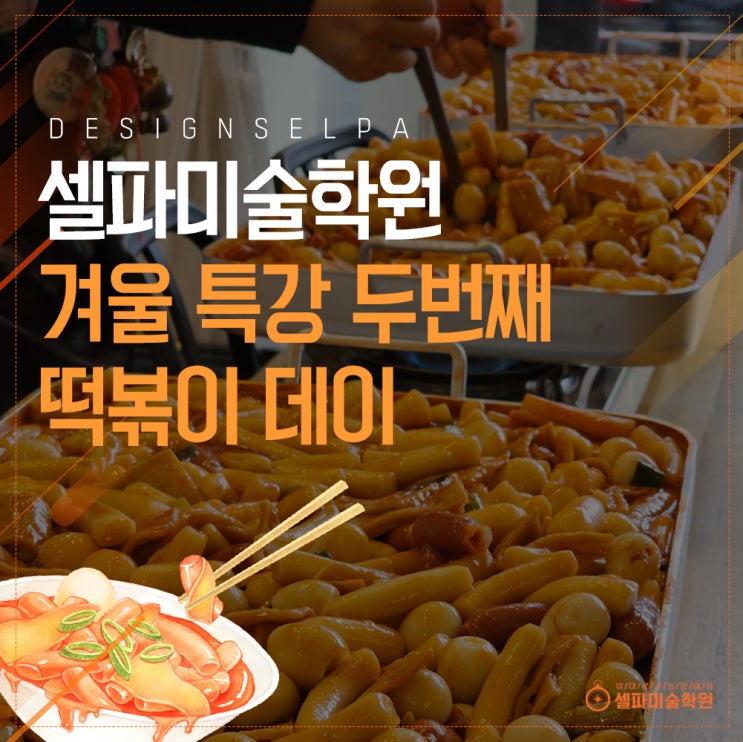 안녕하세요 천안 입시미술학원 디자인 셀파미술학원입니다 : ) 지난주 금요일!!! 애니반, 디자인반 겨울 특강 마무리 떡볶이 파티가 있었습니다~ 긴 겨울 특강동안 힘들었을텐데 열심히 한 셀둥이들 잠시나마 떡볶이 먹고 행복했길 바라며~♥ 2026 셀파미술학원 ️셀파 두번째 떡볶이 데이 떡볶이 데이 세팅 준비중.. 피크닉은 빠질 수 없죠~~ㅎㅎ 이번 두번째 떡볶이데이에서도 어묵, 비엔나 소시지, 메추리알, 치즈떡까지 맛있는 재료 듬뿍듬뿍!! 계속 끓여주면서 맛있어지는 중..~ 맛있게 먹었길 바라며~ 겨울 특강동안 고생했어요! 새학기 화이팅!!! ▼겨울특강 첫번재 떡볶이 데이▼ ▼셀파 미술학원 인스타▼ <img src="https://blogthumb.pstatic.net/MjAyNjAzMDZfMjg3/MDAxNzcyNzU4MTcwMTEw.drVJY5QTFU8sTcUqOjzxcSwoTvA_W-grfGLl3gmULegg.Vg1ZaqB0bK4x4-a21LDKpOiL0YjDxmLFB_D1pNgo9BIg.JPEG/%BD%E6%B3%D7%C0%CF.jpg?type=s3" />
