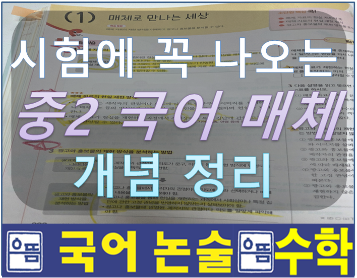 안녕하세요. 동작구 상도동, 본동, 상도역, 노들역에 위치한 으뜸 논술 으뜸 국어 / 으뜸 수학 동작구 대표 국어 학원 으뜸 국어입니다. 오늘은 중학교 국어에서 중요한 단원 중 하나인 '매체' 단원의 핵심 개념에 대해 말씀드리고자 합니다. 중학교 2학년부터는 단 순한 글 읽기가 아니라 매체 자료를 분석하고 이해하는 능력이 중요해집니다. 뉴스, 광고, 포스터 등 다양한 매체를 읽고 그 안에 담긴 의미를 파악 하는 것이 핵심입니다. 매체 자료의 현실 재현 먼저 가장 중요한 개념은 현실 재현입니다. 현실 재현이란 현실에서 일어나는 사건이나 현상을 매체를 통해 다시 나타내는 것을 의미합니다. 예를 들어 ✔ 뉴스 기사....... <img src="https://blogthumb.pstatic.net/MjAyNjAzMTJfMTM1/MDAxNzczMjk2ODgzNjM2.L5ttS4-XQZ9hweHL7vkMGLdhLh1xfDZcZWHo0NBuomIg.ZrgMgpEy9LXmQkeKL7bcOx8O0jf4aYdZJKIt5h8ItuMg.PNG/%B1%D7%B8%B201.png?type=s3" />