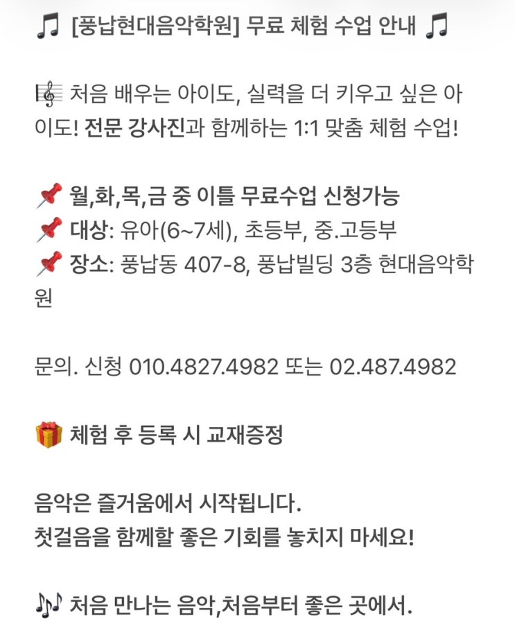 #풍납동피아노레슨 #풍납동피아노학원 #풍납현대음악학원 #풍납동무료체험수업 #풍납동유아피아노 <img src="https://blogthumb.pstatic.net/MjAyNjAzMDdfMjc5/MDAxNzcyODY1MDExMDE0.JvDI_Z1YoqZof5ai47EXu6r435FbzFGLOYRUCBaA58gg.BQYmhFdIe_W_9DXtjRdB6-Og7e1yXRN81gFcoDl19-0g.JPEG/IMG%A3%DF8798.JPG?type=s3" />