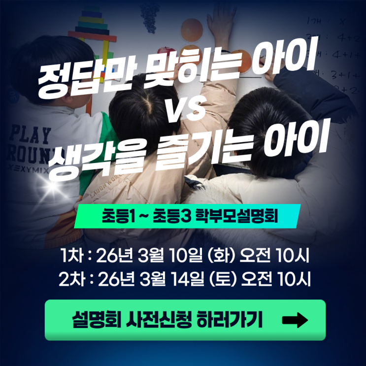 정답만 맞히는 아이 vs 생각의 과정을 즐기는 아이-초1~초3 동탄사고력수학학원 학부모설명회