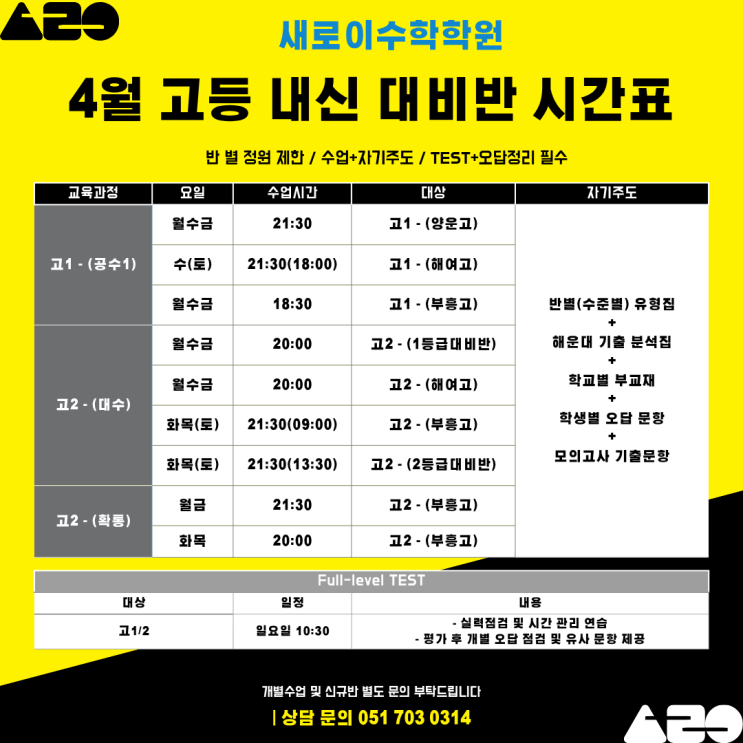 2026년 4월 고등부 수업 및 일정안내 [해운대 좌동 새로이수학학원]