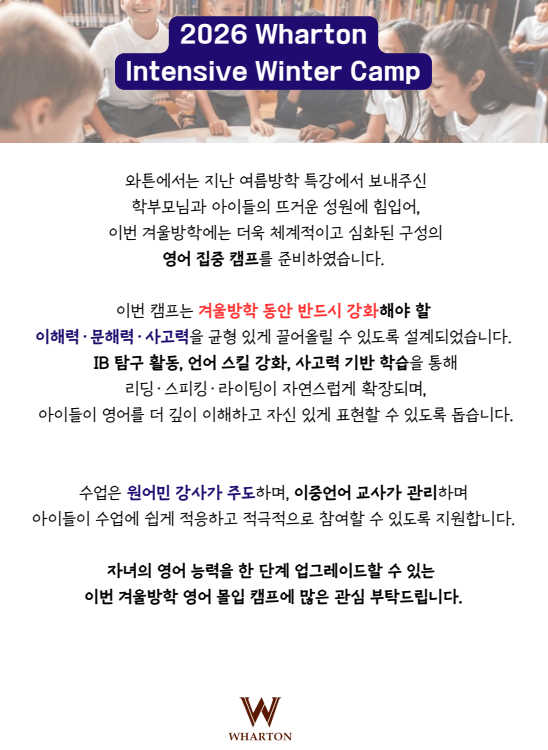 + 2026 Wharton Winter Camp(IB PYP 기반 탐구 활동)