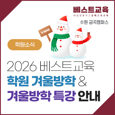 베스트교육 수원금곡캠퍼스 2026 겨울방학 및 겨울방학 특강 안내