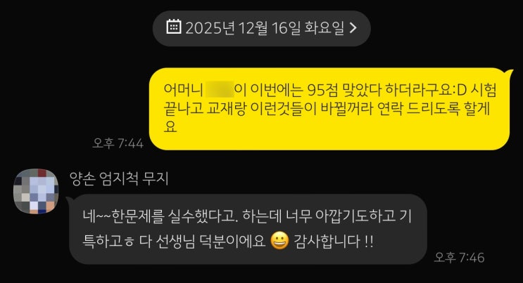 2025년이 어느덧 한주밖에 남지 않았습니다. 올 한 해도 뜻깊은 시간 보내셨길 바라며, 저희 학생들도 25년을 미래를 위한 준비로, 의미 있는 시간을 보냈길 바랍니다. 가이젤 개원 초기 때부터인 초등학생 때부터 등원해서 고3까지 등원했으며, 열심히 준비해서 아주대 합격한 학생. 고등학교 내내 가이젤 등원하며, 수능 1등급 받은 학생들까지, 저한테는 의미 있는 시간이 된 2025년입니다. 중학생들 또한 열심히 준비하여, 점수가 많이 오른 모습 보입니다. 26년 새해가 오면 또 새롭게 목표를 위한 준비를 하며 나아가야 할 학생들을 잘 이끌어보도록 하겠습니다. 예비 이천고2학년(현재 고1)은 정원 마감입니다. 특히, 중학교 과정이 미흡....... <img src="https://blogthumb.pstatic.net/MjAyNTEyMjFfOTQg/MDAxNzY2MzI1NTk5MTYw.t5Sk8sE1tFDj8pPmPTVx9rMIVJFIHK-QHnT69LzpfyUg.o24cO9qz0Y-WXBBUKp37sR4b5hnFwRKADMBUM8of560g.JPEG/KakaoTalk_20251221_225100172.jpg?type=s3" />