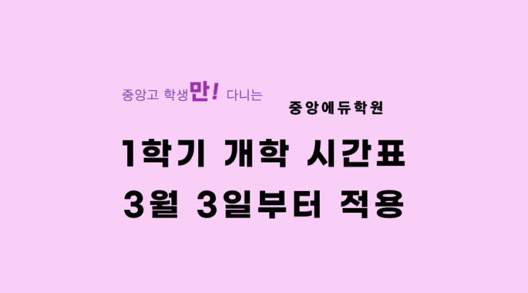 [천안-중앙고]중앙에듀-메디컬학원 3월 개학 시간표 안내