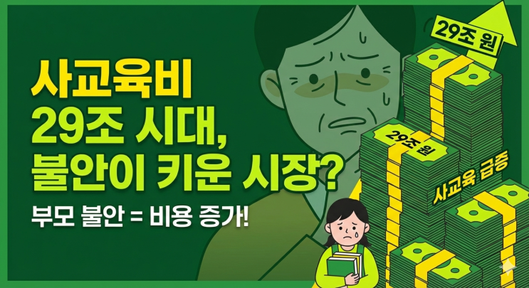 돈이 아닌 '데이터'로 부모의 심리적 압박을 해소하는 법 안녕하세요 대한민국 입시의 본질을 데이터로 증명하는 HY교육 입시분석팀입니다. 최근 한국개발연구원(KDI)에서 발표한 보고서에 따르면, 대한민국 사교육비 시장이 29조 원을 돌파하며 4년 연속 역대 최고치를 기록했습니다. 흥미로운 점은 저출생으로 학생 수는 줄어드는데 시장은 오히려 커지고 있다는 사실이죠. 연구 결과, 부모의 경쟁 압력 점수가 1점 높아질 때마다 사교육비 지출은 2.9%씩 증가하는 것으로 나타났습니다. 이는 자녀가 치열한 입시 경쟁에서 뒤처질까 걱정하는 부모님의 '불안'이 사교육 시장을 지탱하는 핵심 동력임을 보여줍니다. 부....... <img src="https://blogthumb.pstatic.net/MjAyNjAyMjJfMjc5/MDAxNzcxNzQwMDMxMzM5.6TReuuAEKebacsQyr0g_mQRbz-j-xPqJSTgG4wtlxqEg.xay6EFxdAF1xiTDzrvYBHO9OewgcQ4OkWT7Tvp4-b_4g.PNG/Gemini_Generated_Image_rlqzearlqzearlqz.png?type=s3" />