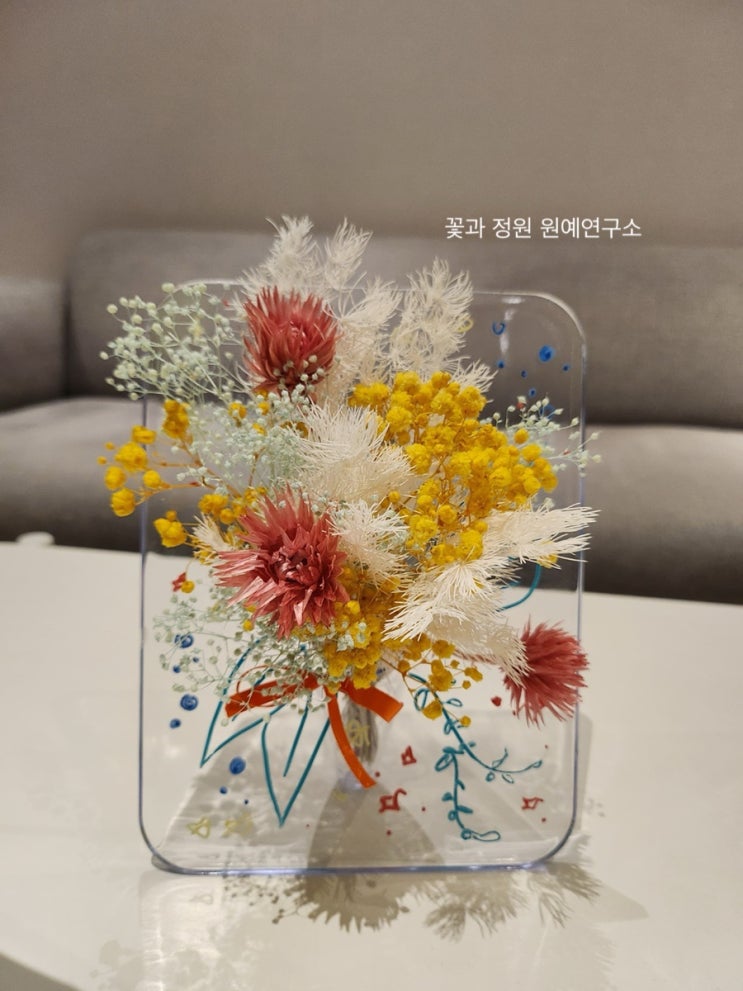 안녕하세요 :) 꽃과정원 원예연구소입니다 이번 포스팅에서는 “마음에 새기다” 강의 현장을 소개해드리겠습니다. 기업 강의 출강 홍채희 꽃과정원 원예 연구소 꽃처럼 기억하고, 마음에 새기다 이번 수업은 프리저브드 플라워를 활용해 꽃다발 형태로 먼저 구성한 뒤, 이를 꽃 액자에 꽂고 그림으로 마무리하는 순서로 진행했어요. 소재는 아스파라거스 미디오, 실버데이지, 안개와 잎안개를 사용했어요~ 꽃들의 비율을 각자 다르게 구성해 작은 꽃다발을 만들었는데요 ^^ 마카펜으로 액자 형태의 꽃병에 각자의 분위기와 감성을 담아 그림과 글로 표현했어요. 꽃과 드로잉이 함께 어우러지니 하나의 감성 오브제가 되었죠 ^^ 이곳은 특히 집중....... <img src="https://blogthumb.pstatic.net/MjAyNjAyMjhfMTE4/MDAxNzcyMjcxNzg0Mzcz.mGvPa9E3w8e6Lh27N6Qq_FczKmJdSiXzyaMjIBZZ43Ag.a4zN4xXbzkLO1tKa0o536wysxoAOsHZGXbwTCtgKtL0g.JPEG/output%A3%DF649114835.jpg?type=s3" />