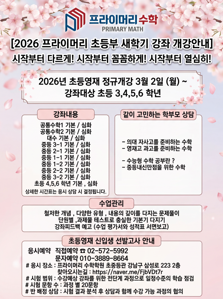 2026 3월 초등영재 개강안내