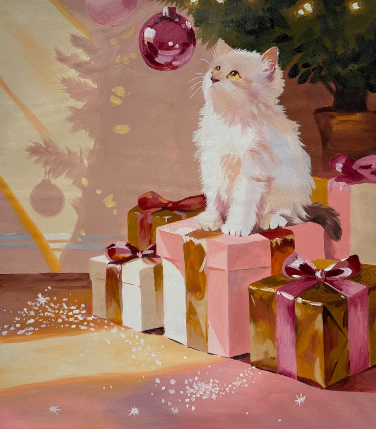 안녕하세요~! 모든 아이들이 '특별한 아이'가 될 수 있는 곳 아이니코(INIQO) 미술교습소입니다♥ 1:1 집중 겨울 특강~! 。゚・。゚ᐠ( ᐢ ᵕ ᐢ )ᐟ。゚・。゚ 선물 상자 위에 살포시 앉아 반짝이는 오너먼트를 바라보는 사랑스러운 아기 고양이~! 포근한 털의 빌감과 은은하게 비치는 빛 표현, 그리고 트리 그림자가 벽에 드리워진 분위기까지 세심하게 담아낸 작품입니다♥ 1:1 수업으로 진행되어 아이의 속도에 맞춰 기초부터 디테일까지 꼼꼼하게 지도합니다~! 유화 특유의 깊이감과 부드러운 블렌딩을 경험하며 한 단계 더 성장한 시간이었습니다♥ 우리 아이 기억에 행복한 겨울 추억으로 남길 바랍니다( ˶'ᵕ'˶)ෆ....... <img src="https://blogthumb.pstatic.net/MjAyNjAyMjVfMTIz/MDAxNzcyMDEyOTMzMDM1.H6oC22LMa7w-X7RC1zWoQBymHeBrp2OoY4SYZ8PdrYsg.QWKBp0fk4xSa4Ehw2fXnt2tTyTVFIdPhzCz1AKuif3Qg.JPEG/IMG_1160.jpg?type=s3" />
