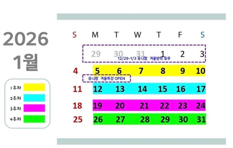 [강일동미술학원]유니팝미술 겨울방학 (12/29~1/3)및 휴무기간 문의 안내