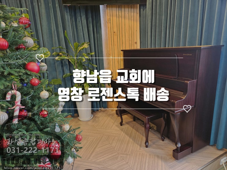 향남읍 중고피아노 영창 로젠스톡 RS-300C 교회에 배송 안녕하세요 화성종합피아노입니다 가까운 향남읍에 있는 교회에서 찾아주셨어요 교회에 잘 어울리고 소리도, 울림도 좋은 영창 수출형피아노 로젠스톡 RS-300C를 선택하셨습니다 워낙에 멋진 외형으로 눈에 띄는 제품인데요 마호가니 무광으로 스타일이 매우 멋있습니다 눈이 계속해서 갈수밖에 없는 멋진 제품입니다 131cm로 높은 키에 걸맞는 좋은 울림과 시원한 터치가 연주자분들이 답답하지 않게 연주하실수있는 모델입니다 미니 그랜드피아노에 버금가는 울림으로 크지 않은 공간에 두셔야하는데 울림은 좀 좋았으면 했을때 많이 사용하시는 131cm의 제품인데요 그중에서도 이렇게 디....... <img src="https://blogthumb.pstatic.net/MjAyNTEyMTZfMjAx/MDAxNzY1ODY2MDk1NzM1.amBor799iUsDnqmrhaNpn-b3J7uVV1zs8ZM-PuWLWqsg.RkOmudDJNkPX3qUlsRvbwncMrxLbs8VvYpTLzdvgTN4g.JPEG/1.jpg?type=s3" />