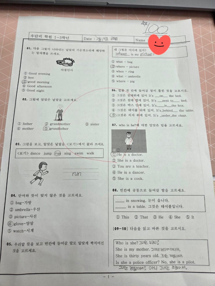 초등학교 3학년 영어 시험 완벽 가이드 초등학교 3학년은 본격적으로 영어 과목이 시작되는 첫 학년이에요. 그래서 많은 부모님들이 “시험은 어떻게 나오지?”, “어떻게 준비해야 할까?” 고민을 많이 하시죠. 오늘은 3학년 영어 시험의 특징과 효과적인 준비 방법을 정리해보겠습니다. 1️⃣ 초등학교 3학년 영어, 무엇을 배우나요? 3학년 영어는 기초 회화 중심이에요. 문법 위주보다는 말하기와 듣기 중심 수업이 진행됩니다. ✔ 알파벳 읽고 쓰기 ✔ 간단한 인사 표현 (Hello, How are you?) ✔ 자기소개하기 ✔ 숫자, 색깔, 요일, 가족 표현 ✔ 교과서 중심의 짧은 대화문 아직 문법 시험보다는 단어와 문장 이해 중심 평가가 많....... <img src="https://blogthumb.pstatic.net/MjAyNjAyMTlfMjQw/MDAxNzcxNDg1NzMyMDk0.PUYzOkqRsZ9LBq-EiueCjkZ2gP5GJUG2yLDMlE07Regg.tuY-g1lcCx5-F6_eUfpoB61kQG3l-jwcmhQgLVfBxlMg.JPEG/KakaoTalk_20260219_101050792.jpg?type=s3" />