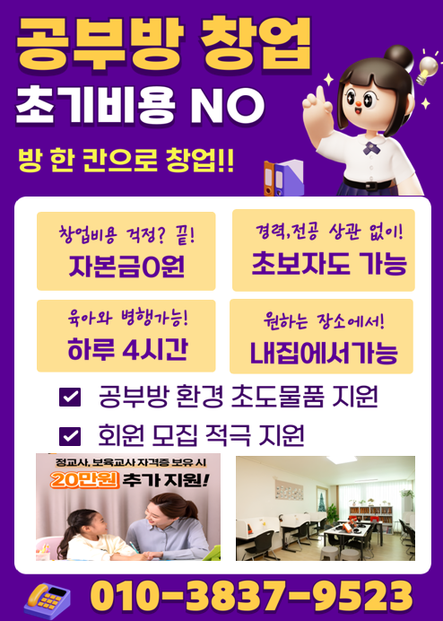 향남공부방창업) 방 한 칸에서 평생 직장을 만들어보세요