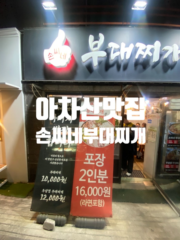 안녕하세요. 오늘은 오랜만에 맛집 포스팅을 하려 합니다. 아차산역에 맛있는 부대찌개 집을 발견해서 꼭 포스팅을 하고 싶더라고요. 그럼 손씨네부대찌개 포스팅 시작합니다. 처음 방문하는 가게일 경우 무조건 기본 메뉴를 시킵니다. 그래야 그 가게의 맛을 제대로 알 수 있다는 게 저희 부부의 지론인데요. 이번에도 첫 방문이라 '손씨네 부대찌개'를 시켰습니다. 매장에서 식사할 경우 공깃밥은 추가 비용이 없는데요. 1000원만 추가 비용을 지불하면 압력 영양 솥밥을 먹을 수 있습니다. 저는 솥밥을 너무 좋아해서 망설임 없이 솥밥을 시켰습니다. 손씨네 부대찌개를 시켰더니 기본적으로 소세지/스팸/당면/떡/수제비가 들어있었....... <img src="https://blogthumb.pstatic.net/MjAyNjAyMjRfMjcz/MDAxNzcxOTIyMTUyNzEx.SzjkElJCCLE9Qj3u1eVn3MxTWWqvnSQkQ-xthci9IVQg.E1dGWYMy7lEnh1L6KFhfacTjGJp3vt64p94a7lYlOI4g.JPEG/IMG%A3%DF4150.jpg?type=s3" />