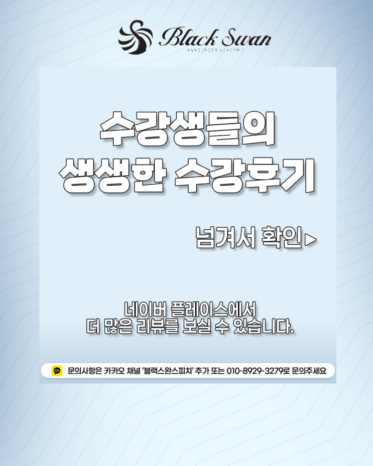“아나운서, 쇼호스트학원 선택하는 방법” 가장 추천하는 건, 무조건 방문 상담을 하는 것을 추천합니다. 방송인이 되는 수업은 수능이나 자격증 따는 것과는 정말 다르답니다. 직접 학원을 방문해서, 선생님이 어떤지, 수업 환경은 어떤지, 선배들의 모습은 어떠한지 등을 체감해야 해요. 누군가에는 맞는 학원은 다 따로 있는 거니깐요. 블랙스완스피치는 네이버 플레이스에서도 많은 학생분들이 실제 상담 및 특강, 수업 후기를 올려준답니다. 학생들의 이야기를 한번 들어보는 것도 좋겠죠? 2026년은 모두 원하는 꿈, 이뤘으면 좋겠습니다. “우리가 그러기로 마음먹었으니깐” 상담 및 문의) 카카오톡채널:블랙스완스피치 TEL)02-312-1387 ....... <img src="https://blogthumb.pstatic.net/MjAyNjAyMjNfMjA1/MDAxNzcxODE3MTM0NjY1.O3AagLMwfAhA-H9fiTT3LAgCx6qRXEP8INFJIQyMwDEg.6uemCRucsu-63-TwQFERs6mxFW5BfGvKkwvoSwqzgHgg.PNG/1.png?type=s3" />