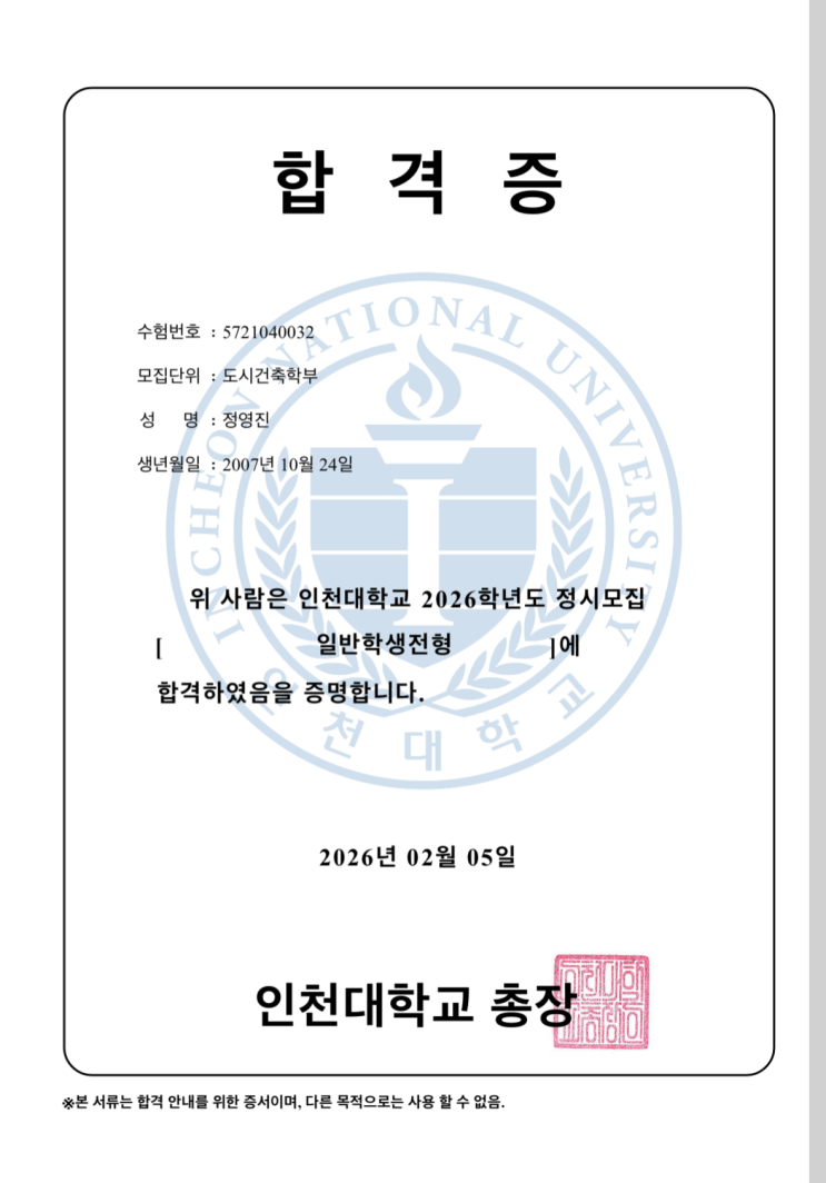 [국단기 합격수기] 인천대학교 도시건축학부 합격!