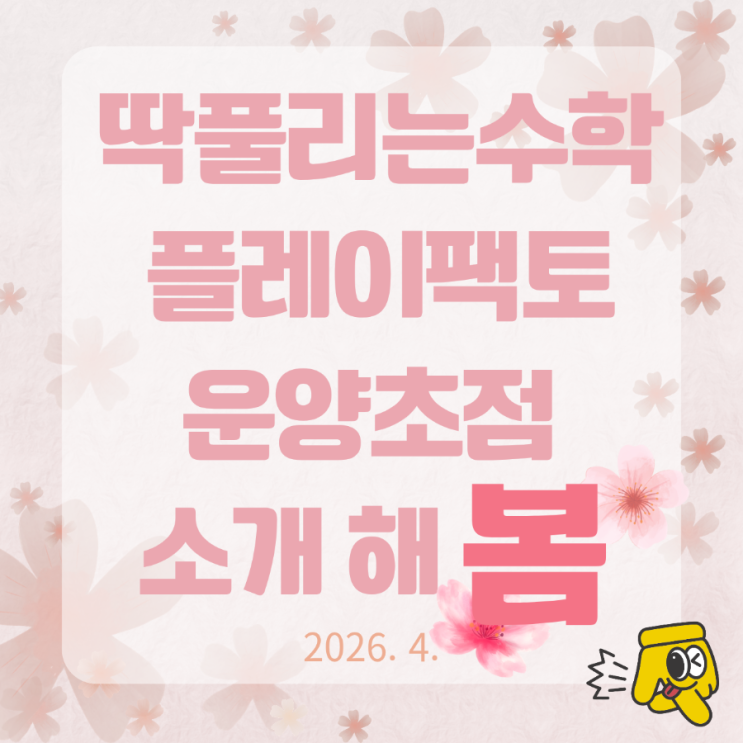 안녕하세요? 김포 운양동 초등 수학학원 딱풀리는수학 운양초점 다야쌤입니다. 새학년이 되어, 새롭게 계획하신 일들이 많으시지요~!? 학습에 있어서는 첫 방향성이 매우 중요합니다. 아이의 수학을 지켜보면 이런 순간이 있습니다. 문제는 잘 푸는 것 같은데, 막상 설명을 시켜보면 멈칫하는 순간. 바로 이 지점에서 우리는 질문해야 합니다. “이 아이는 정말 이해한 걸까?” 딱풀리는수학은 이 질문에서 출발했습니다. 단순히 문제를 많이 푸는 학습이 아니라, 이해하고, 말하고, 스스로 정리하는 힘을 기르는 것이 목표입니다. 딱풀리는수학 운양초점 교육과정 안내 7세 ~ 초등 2학년 놀이와 사고로 시작하는 ‘수학의 기초 체력’ 이 시....... <img src="https://blogthumb.pstatic.net/MjAyNjA0MDRfMjQ4/MDAxNzc1MjY3MDg3NDM3.UokKFLoVtd2KrQL9R5Hx0QyrSaPgiLtidAlnkNzkB6Ag.9ms7WM3CnI1aIT-r63rz02M9IrbSqGpF9g-AfTWvmOsg.PNG/900%A3%DF%B5%FC%C7%AE%B8%AE%B4%C2%BC%F6%C7%D0_%C7%C3%B7%B9%C0%CC%C6%D1%C5%E4_%B1%B3%C0%B0%B0%FA%C1%A4_%BE%C8%B3%BB_%A3%A81280_x_1280_px%A3%A9%A3%DF20260404%A3%DF104412%A3%DF0000.png?type=s3" />