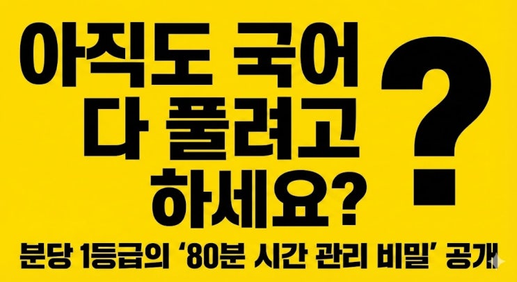 1. 3월 모평 국어, 왜 항상 시간이 부족할까? 많은 분당 지역 상위권 학생들도 토로하는 고충입니다. "공부는 많이 했는데, 막상 시험지만 받으면 머리가 하얘져요." 이유는 간단합니다. '상대평가'에 대한 이해를 바탕으로한 '전술'이 없기 때문입니다. 1교시 국어는 지식 싸움이 아니라 '정답을 결정하는 출제원리'를 파악하고 있느냐, 그리고 '시간 관리 심리전'에 대해 이해하고 있느냐로 결정됩니다. 쉽게 말해 남들보다 얼마나 정확하게, 그리고 동시에 얼마나 가성비 좋게 문제를 푸느냐가 나의 등수를 결정하는 것이죠. 오늘 그 심리전에서 승리하는 80분 행동 강령을 공개합니다. 2........ <img src="https://blogthumb.pstatic.net/MjAyNjAyMjZfNDYg/MDAxNzcyMDc4MDMwNjE2.JkeroapJl6omxhCw3rC1Gb92_TsFp0QCtlYb4iAxMgkg.gm6coHCYnE7TNN6zwAuerjrUReXi32Ud9jOX8sc2XsYg.JPEG/unnamed_%284%29.jpg?type=s3" />