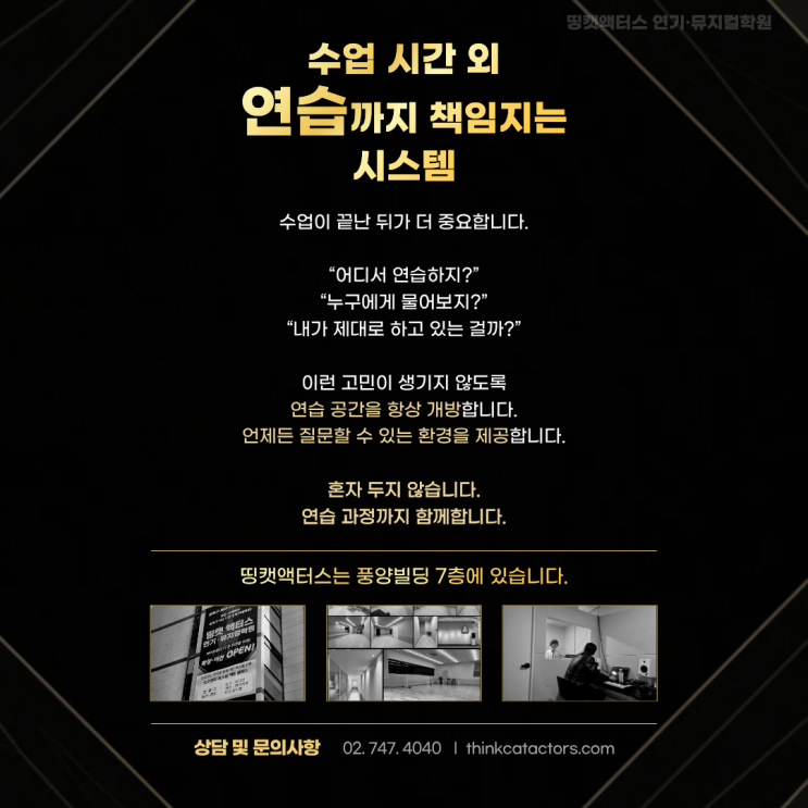 연기학원 상담, 무엇을 물어봐야 할까요? 연기학원 상담을 앞두고 있는 학생이나 부모님이라면 한 번쯤 이런 고민을 해보셨을 겁니다. “어떤 학원이 좋은 학원일까?” 하지만 이 질문은 이렇게 바뀌어야 합니다. “나는 어떤 기준으로 학원을 선택해야 할까?” 연기학원은 많지만, 모든 학원이 나에게 맞는 것은 아닙니다. 그래서 오늘은 상담을 갈 때 반드시 확인해야 할 질문들을 정리해드립니다. 이 질문들만 알고 가셔도 학원 선택의 기준이 훨씬 명확해집니다. 첫 번째 질문입니다. “이 학원은 어떤 배우를 만들려고 하나요?” 많은 학원이 합격률을 이야기합니다. 하지만 더 중요한 것은 이 학원이 추구하는 배우의 방향입니다. 감정을 강....... <img src="https://blogthumb.pstatic.net/MjAyNjAzMjdfMjA5/MDAxNzc0NTk4MTU1OTY1.1-eGZlhQTa9vFxAMakiNgsbllLrSDg0Hbsy9Ikd7cMYg.ZxfNgI4yn1BS_68p6lIbZJyPd7Cjo_C0ymSC0Nc_6hAg.PNG/11.png?type=s3" />