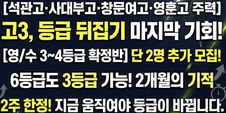 제목: 석관고·사대부고·창문여고·영훈고 고3 주목! 영/수 3~4등급 확정반, 단 2명 기적의 추가 모집 (2주 한정)