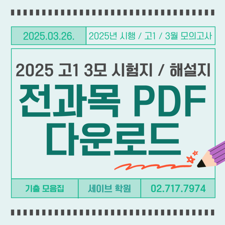 2025년 시행 고1 3월 모의고사 전과목 PDF 다운로드 / 고1 모의고사 시험 시간표