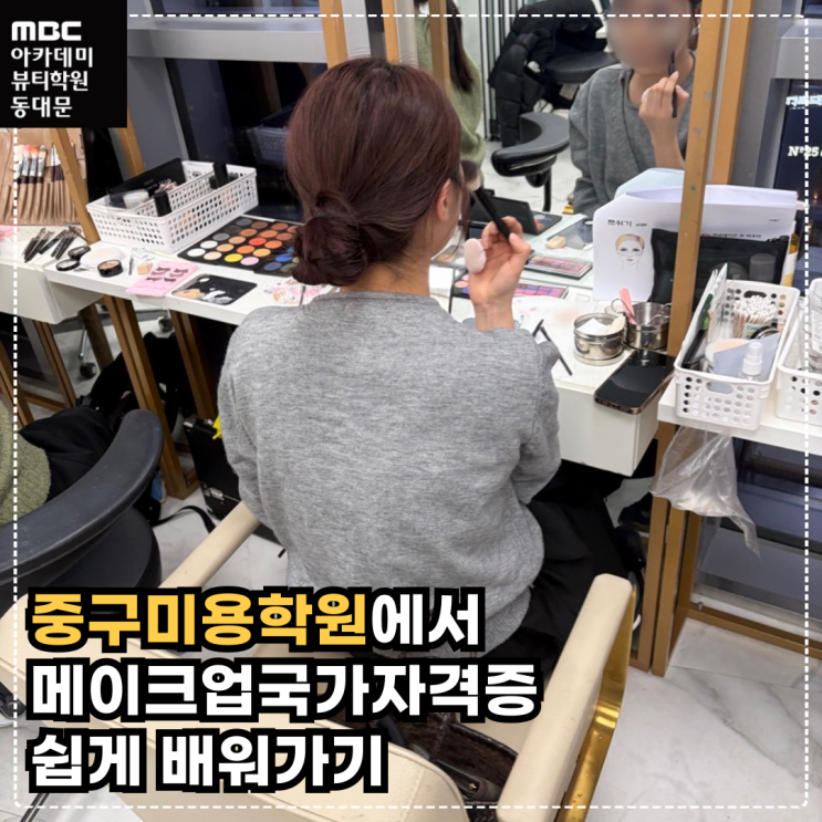 안녕하세요 중구미용학원 입니다 ! 오늘은 특히 인기가 많은 메이크업국가자격증 에 대해 블로그 작성해 보려고 하는데요, 메이크업에 관심이 생기면 한 번쯤은 자격증을 제대로 따보고 싶다는 생각을 하게 되죠 ! 취미로 시작했더라도 실력을 인정받고 싶고, 취업이나 진로까지 연결하고 싶다면 메이크업국가자격증 은 꼭 거쳐야 하는 과정입니다 ㅎㅎ 하지만 막상 준비를 시작하려고 보면 무엇부터 해야 할지, 혼자 연습해도 되는 건지 고민이 많아집니다. 중구미용학원 에서는 이런 고민을 덜어드리기 위해 처음 시작하는 분들도 이해하기 쉽게, 단계별로 배우는 메이크업국가자격증 수업을 운영하고 있습니다 :-) 메이크업국가자격증 시험은....... <img src="https://blogthumb.pstatic.net/MjAyNjAyMjZfMjQ0/MDAxNzcyMDY5Njk2NzU5.slcdU5aCoVrQ5Qn0IKGnaCQC3Ja86dXKH4m8hW-GAHEg.F9yFByrLC_2wMvFZE4OcDtg4J5hHwbygDpQN9NwdlOYg.PNG/%BA%ED%B7%CE%B1%D7-%C7%A5%C1%F6_%BA%B9%BB%E7%BA%BB-001_%2875%29.png?type=s3" />