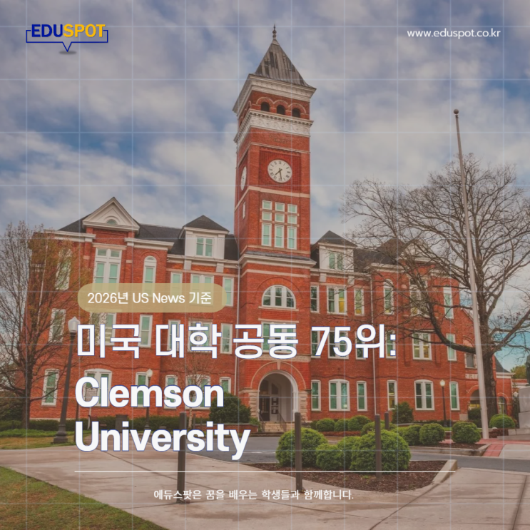 [에듀스팟] 2026년 US News 기준 미국 대학 공동 75위: Clemson University