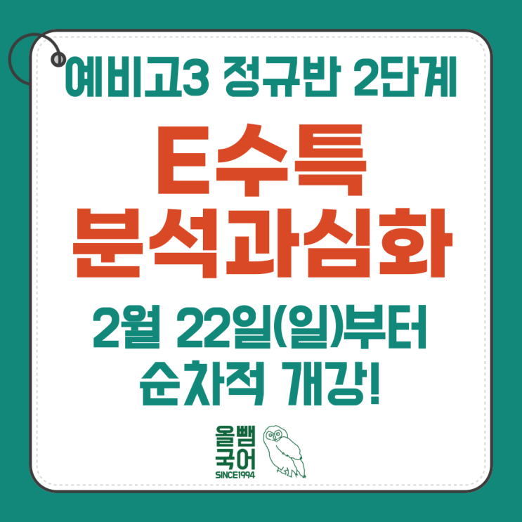 [올뺌국어] 예비고3, <E수특 분석과 심화반>, 2월 22일(일) 개강!