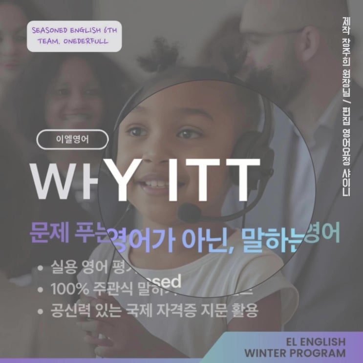 송파구에서 17년째 아이들과 함께 웃고 성장하는 "영어요정 샤이니" 입니다. 이번 겨울방학 이엘영어 초등부 예비 5학년 아이들과 함께 ITT 국제통역사 훈련 특강을 진행하고 있습니다. ‘문제를 푸는 영어’가 아닌, ‘말하는 영어’를 목표로 한 이번 과정은 아이들이 스스로의 가능성을 발견하고, “나는 할 수 있다”는 확신을 차곡차곡 쌓아가는 시간입니다. 그 시작을 앞두고, 이엘영어가 ITT를 선택한 이유를 나누어 보려 합니다. 왜 ITT? 이번 겨울방학, 아이의 영어 실력을 "한 단계 끌어올릴 수 있는 시간"을 고민하고 있었습니다. 이엘영어의 겨울방학은 단순한 문제 풀이가 아닌, 실제로 말하고, 듣고, 전달하는....... <img src="https://phinf.pstatic.net/image.nmv/blog_2026_01_31_1091/UApU76Z816_01.jpg?type=f480x480" />
