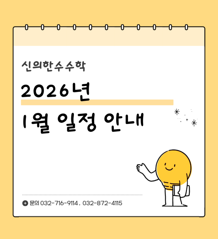안녕하세요? 신의한수수학학원입니다. 어느덧 1월, 새해의 시작과 함께 본격적인 겨울방학이 시작되었습니다. 중.고등 시기의 겨울방학은 단순히 쉬어가는 시간이 나이라, 지난학기의 부족함을 메우고 다가올 학기를 단단하게 준비해야하는 ***가장 중요한 전환점*** 입니다. 이른 아침부터 늦은 밤까지 학원을 오가며 자신과의 싸움을 이어가는 아이들의 뒷모습을 볼 때면 대견함과 동시에 뭉클한 마음이 들기도 합니다. 그 치열한 고민의 시간들이 **확신**과 **성적**으로 바귈 수 있도록 올겨울, 신의한수가 아이들의 가장 든든한 페이스메이커가 되겠습니다. *고난도 유형 및 킬러문항 정복 *학기별 필수 개념 완벽 심화 *개별 오답 누적관....... <img src="https://blogthumb.pstatic.net/MjAyNTEyMjlfMjA5/MDAxNzY3MDAxMTkyMjc4.XQPznbPbNkU5XVwFtMQYbzM01MM2FTwwbaqMxwB_rhAg.NRWBAc-ee0VdRgKOPm_P9c-V_hYdyV2L-ccwuIIPyfEg.PNG/1%BF%F9%C0%CF%C1%A4%BE%C8%B3%BB.png?type=s3" />