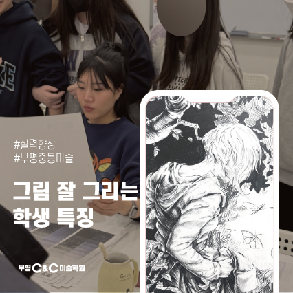 안녕하세요, 부평씨앤씨미술학원 유니쿤 소연T입니다. 수업을 하다 보면 학부모님들께서 종종 이런 질문을 하십니다. “우리 아이도 그림을 잘 그릴 수 있을까요?” “그림을 잘 그리는 학생들은 뭐가 다른가요?” 사실 그림 실력은 단순히 재능만으로 결정되는 것은 아닙니다. 수업을 하며 다양한 학생들을 지켜보다 보면 성장이 빠른 학생들에게는 몇 가지 공통적인 태도와 습관이 있다는 것을 느끼게 됩니다. 오늘은 수업을 하며 느낀 그림이 빠르게 성장하는 학생들의 공통점을 이야기해보려고 합니다. 1. 관찰을 먼저 합니다 그림을 잘 그리는 학생들은 바로 그리기 시작하기보다 먼저 관찰하는 시간을 가지는 경우가 많습니다. 대....... <img src="https://blogthumb.pstatic.net/MjAyNjAzMDVfMTkx/MDAxNzcyNjg5ODg4NzYz.-4u3CgyVZxaod5AYVIkcCw2yUw_R0nXWiF7Pn-760-0g.rlhAMZVxid9AJOs5ctxl-y2yrYmgdXrTDpE3iCIvpxMg.PNG/%B4%EB%C1%F6_23.png?type=s3" />