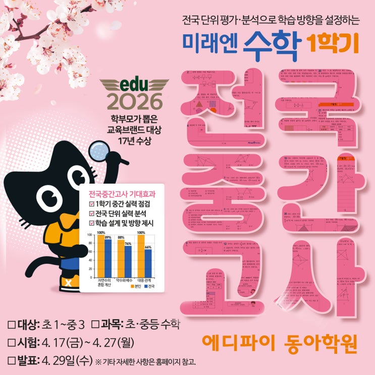 2026년 1학기 미래엔수학 전국중간고사 시행 안내/인천부평 미래엔영어수학 에디파이 동아학원